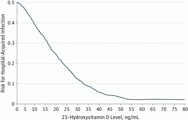 Вероятность заразиться больничной инфекцией при операции как функция уровня витамина Д: